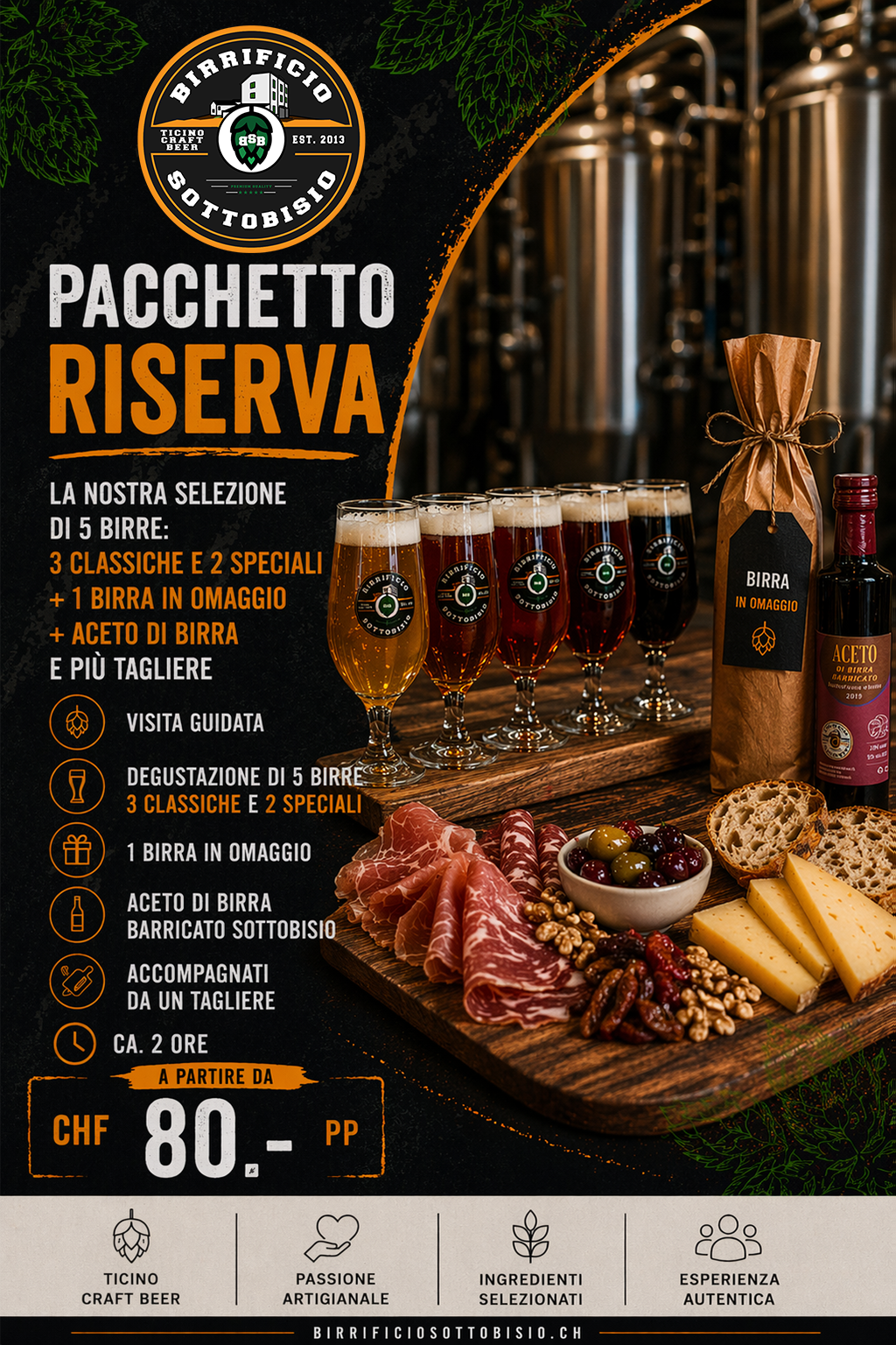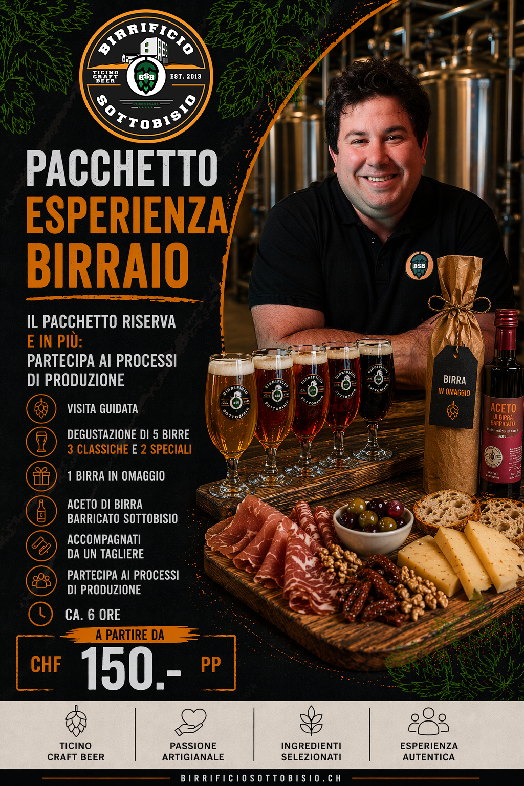 Esperienza immersiva: include il pacchetto Riserva con in più la partecipazione ai processi produttivi insieme al birraio.